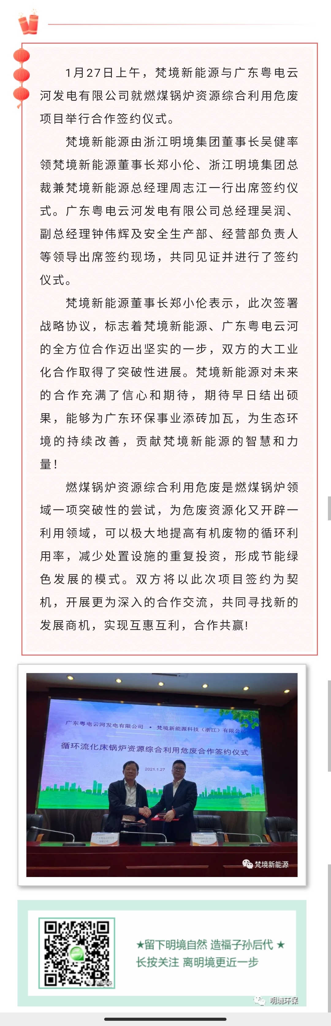 明境環(huán)保集團(tuán)旗下梵境新能源與廣東粵電云河舉行燃煤鍋爐項(xiàng)目合作簽約儀式