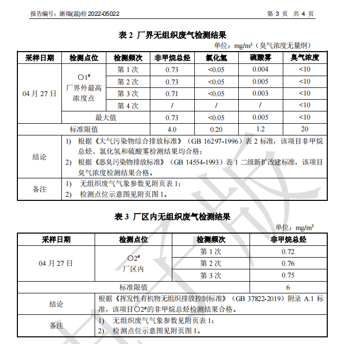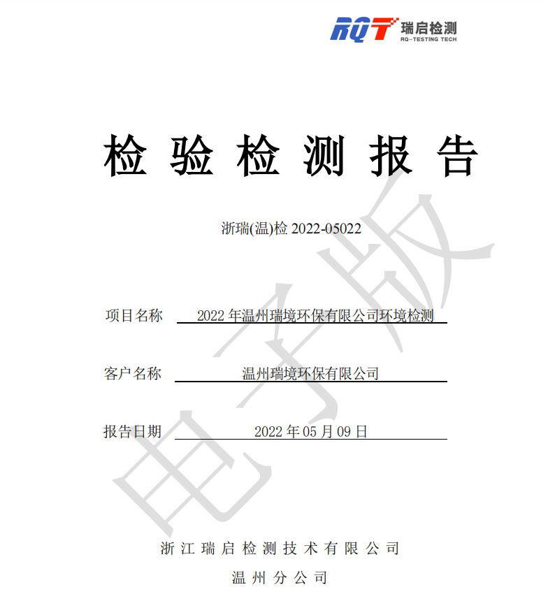 關(guān)于2022年溫州瑞境環(huán)保科技有限公司環(huán)境檢測(cè)報(bào)告的公示