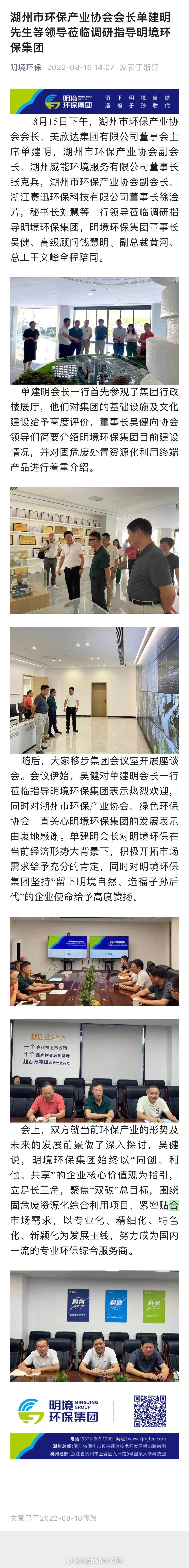 湖州市環(huán)保產(chǎn)業(yè)協(xié)會會長單建明一行 蒞臨指導(dǎo)明境環(huán)保集團(tuán)