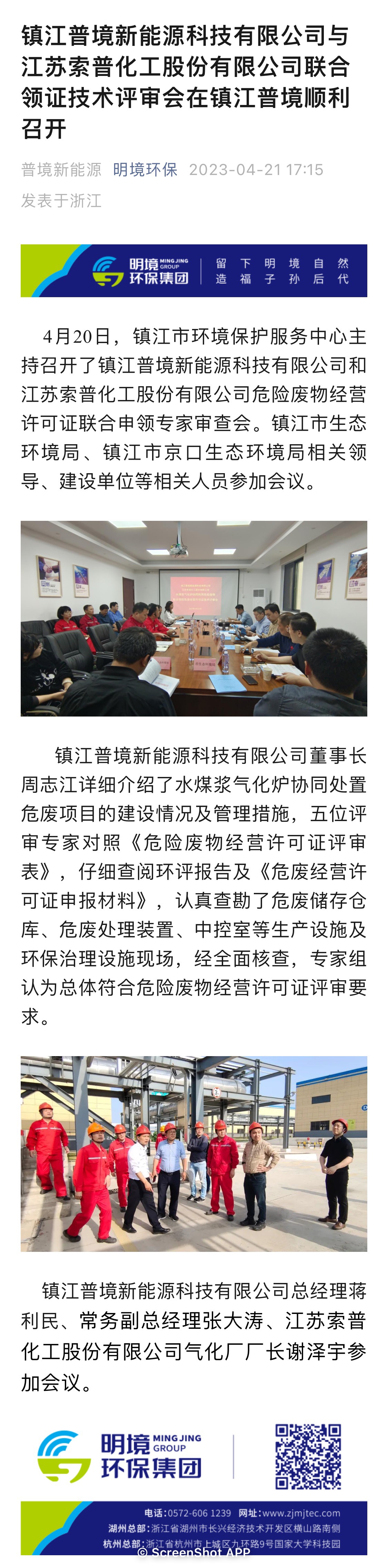 鎮(zhèn)江普境新能源科技有限公司與江蘇索普化工股份有限公司聯(lián)合領(lǐng)證技術(shù)評(píng)審會(huì)在鎮(zhèn)江普境順利召開(kāi)